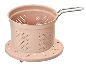 | 鍋身材質 | 鍋身/蒸盤/瀝水籃本體:鋁合金 鍋內/蒸盤/瀝水籃塗層:聚四氟乙烯塗層(PTFE)(耐熱200℃) 鍋身外層:烤漆 鍋底:SUS430不銹鋼 把手/鈕頭:酚甲醛樹脂(電木PF) (耐熱120℃) 上蓋:玻璃(耐熱200℃) |