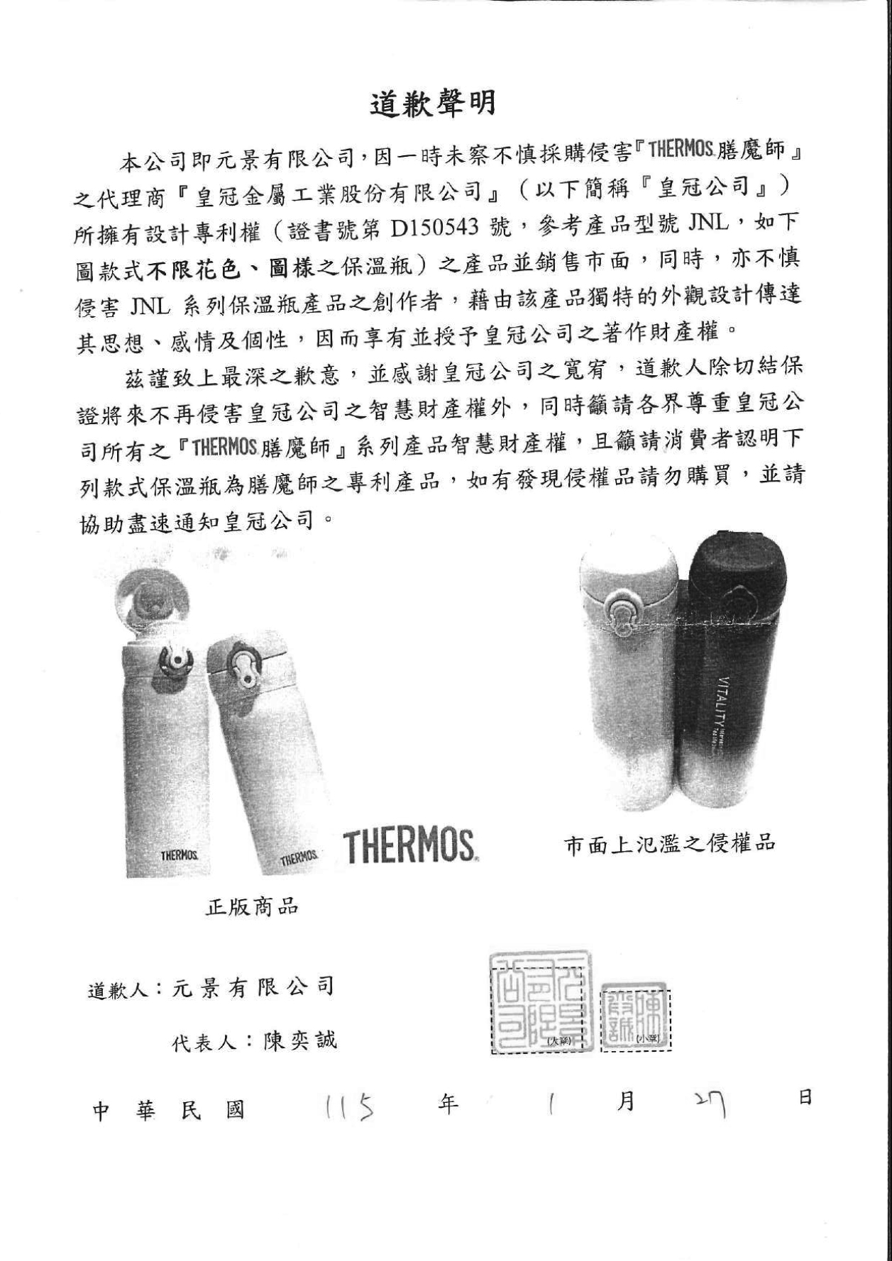 來自仿冒者「元景有限公司」道歉啟事